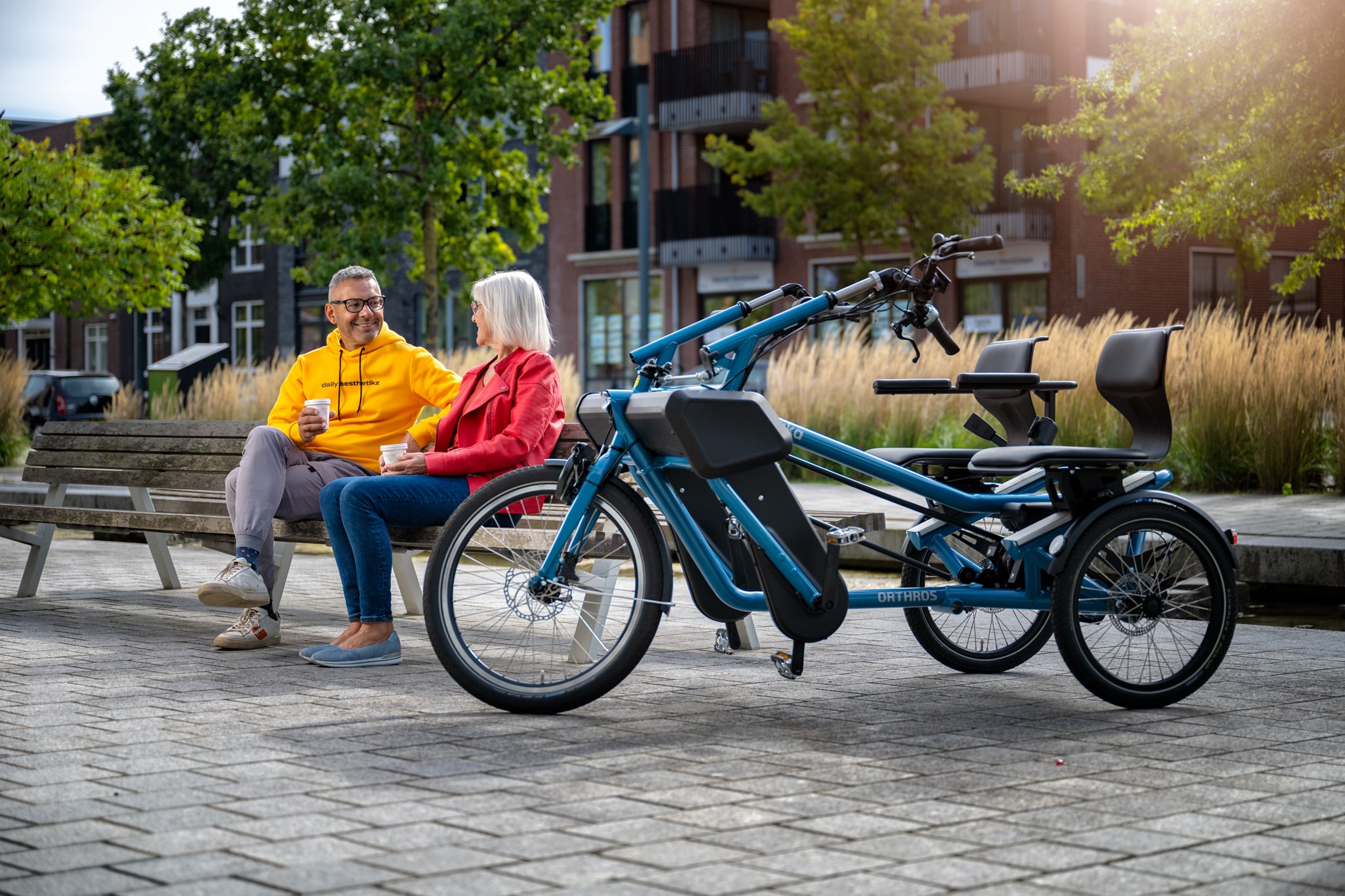 De Orthros is standaard uitgerust met een draaibare bijrijdersstoel, waardoor de passagier nog gemakkelijker kan op- en afstappen. De unieke ergonomische zithoekverstelling maakt het mogelijk om de zitpositie diagonaal te verstellen. Op deze wijze kan de duofiets worden aangepast aan iedere persoon, ongeacht hun lichaamslengte. Door deze fietshouding is de belasting van de armen, benen en nek minimaal.