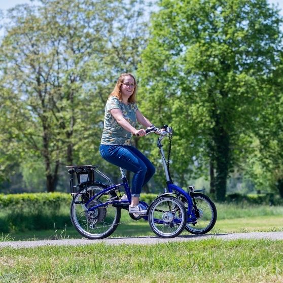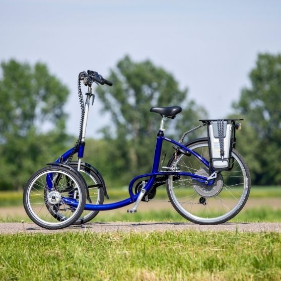 De Viktoria driewielfiets van Van Raam is speciaal ontworpen voor mensen die moeite hebben met het inschatten van de breedte van een driewieler. Vandaar de oplossing van twee wielen aan de voorkant. De Viktoria-driewielfiets heeft tevens een extreem lage en ruime instap. Uiteraard zijn deze fietsen te verkrijgen met diverse opties.
